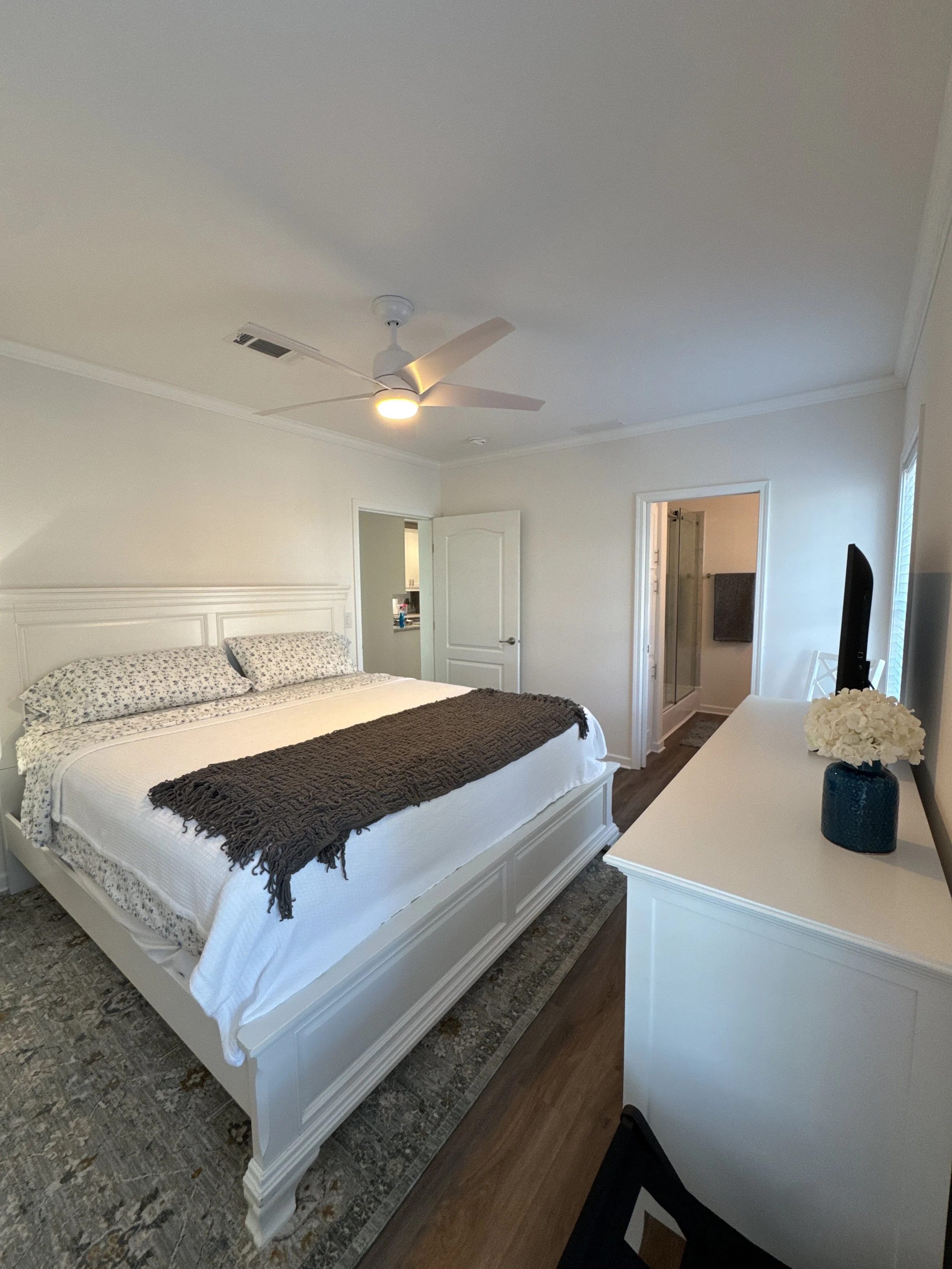 Our short-term rental features clean and cozy bedrooms designed to provide a comfortable and restful stay. Each bedroom is thoughtfully furnished with soft bedding, ample storage space, and tasteful décor to create a welcoming atmosphere. Fresh linens and sanitized surfaces ensure a hygienic environment, while ample natural light enhances the warm and inviting ambiance. Whether you're staying for a few nights or longer, our bedrooms offer the perfect retreat after a day of exploring or work.